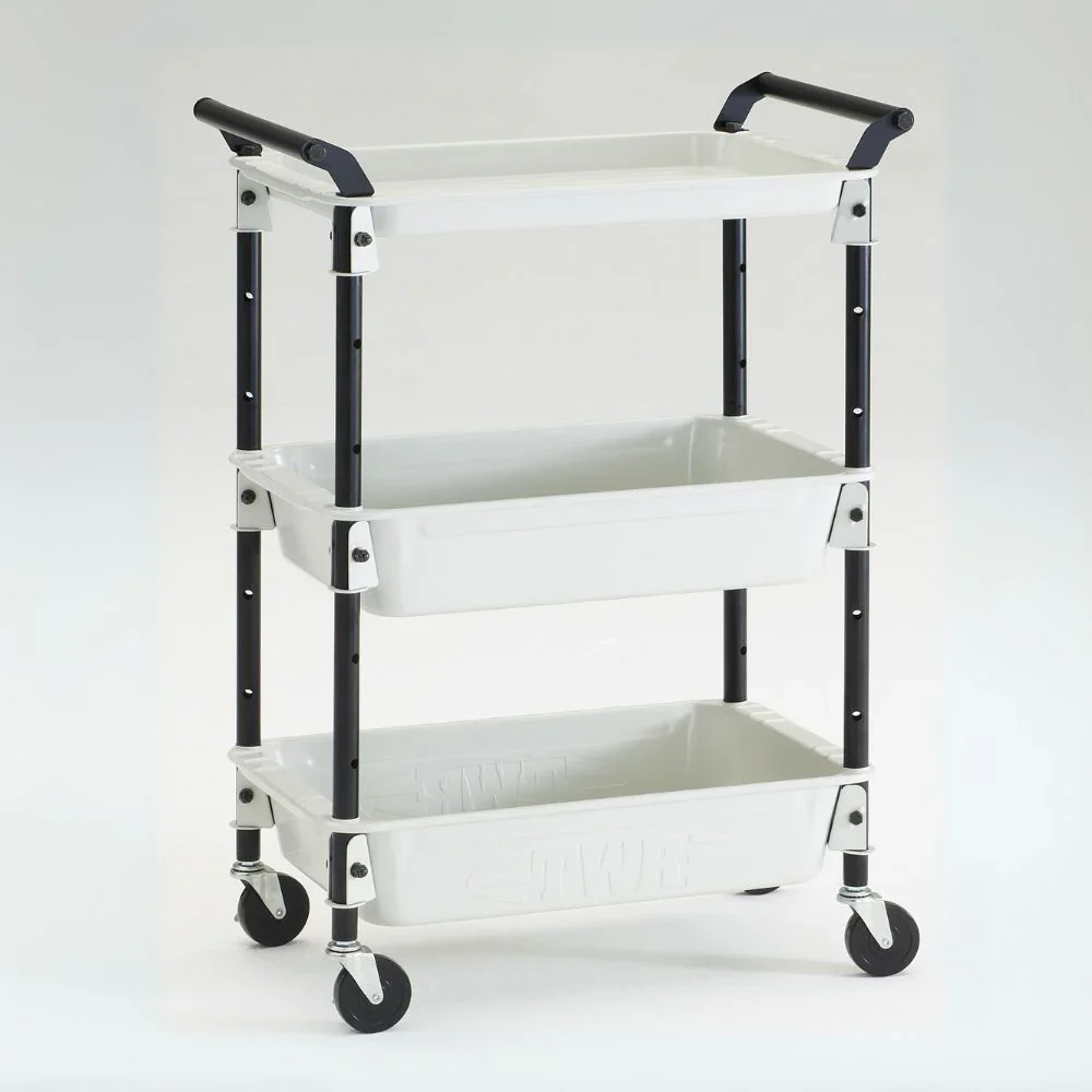 This versatile 3 tier mobile utility trolley has a multitude of uses, from organising your home, office or workshop supplies. Made from durable pressed steel, each tray is seamless with curved corners. The trays vary in depth for easy access and different options in desired functionality.